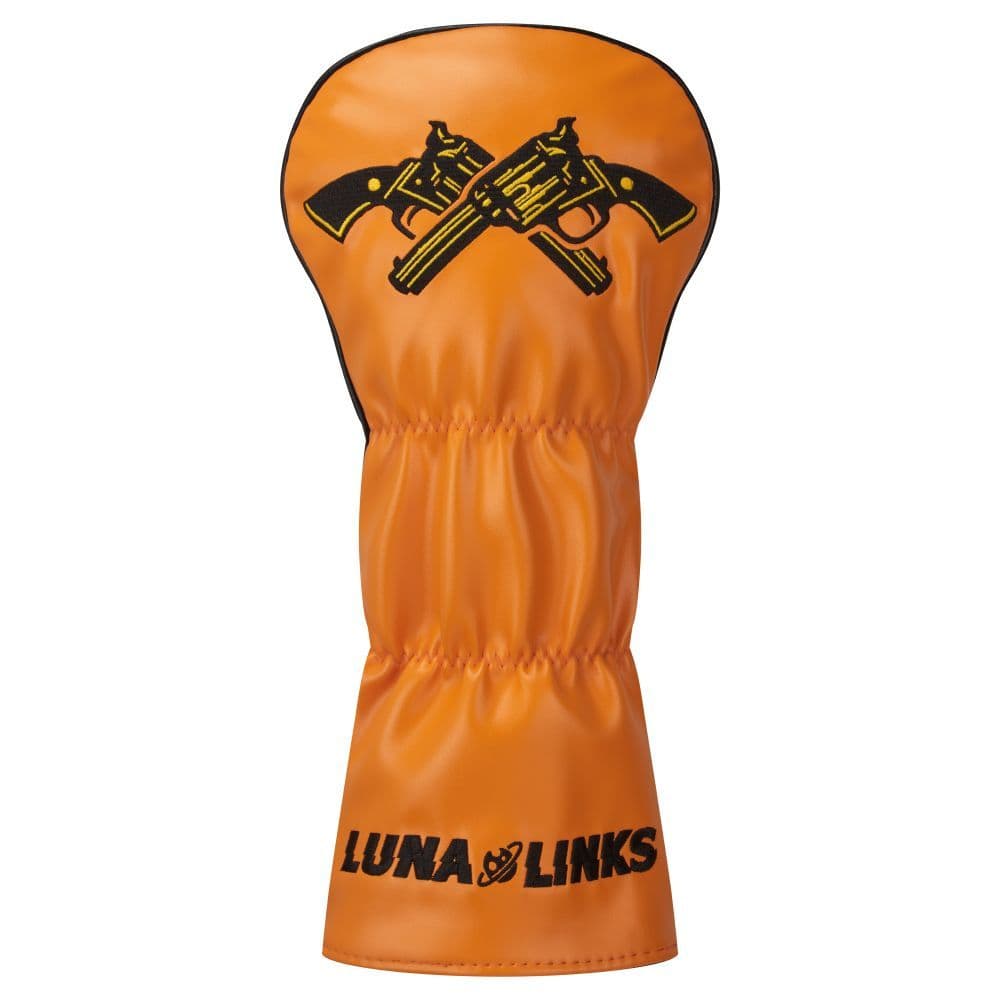 The back showcases the signature LunaLinks logo alongside a pair of crossed pistols, embroidered to perfection. Featuring sleek black piping and a soft black lining, this headcover offers a seamless blend of durability and style, ensuring your driver stays protected with flair.