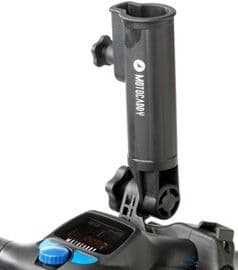 The Motocaddy Umbrella holder is adjustable to hold an umbrella at various angles